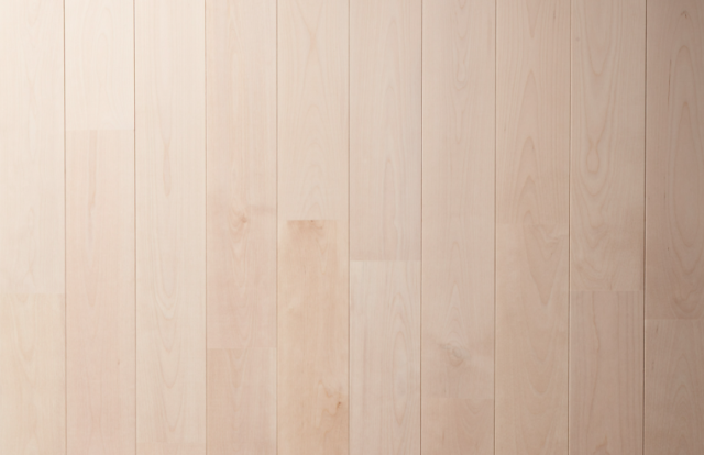 カバザクラ(バーチ)は淡い黄色の色味で、部屋を明るく清潔に見せます。木目はきめ細かく均一で上品な印象を与えるため、小規模な店舗でも高級感を損ないません。