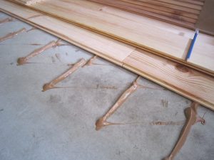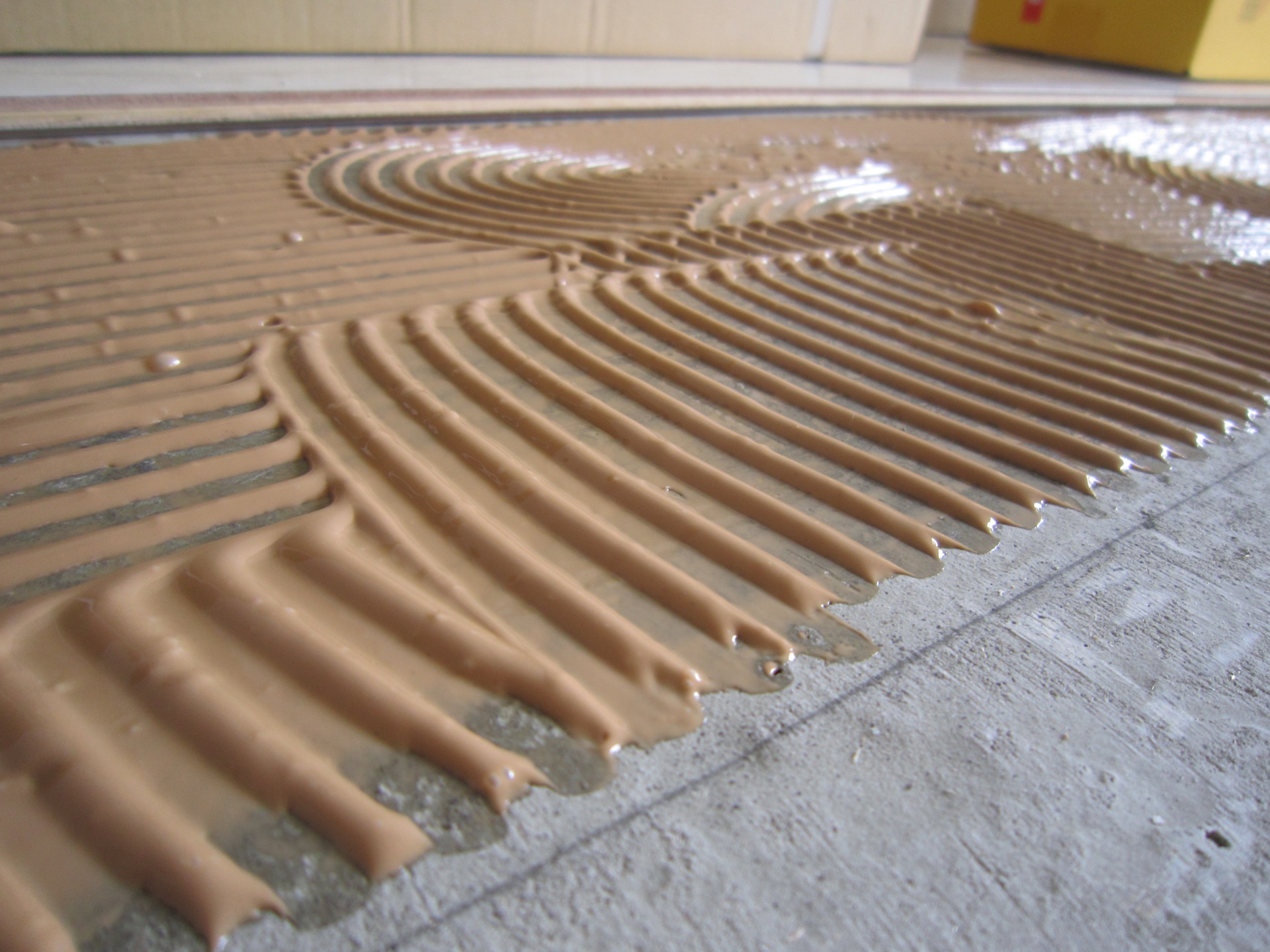弾性接着剤が応力を分散しますので、床の動きに対応します。